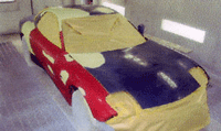 3.鈑金が終了し、細かい凹み等を修正。マスキング後に下塗り。