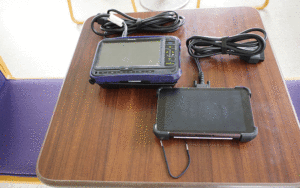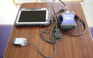 コンピューター診断機(四角いものがダイハツ純正で青いものがスズキ純正です。主にメーターに警告灯が点灯した時に、原因を調べるときに使用します。)国内車種を中心に汎用的に情報が得られるコンピューター診断機です。