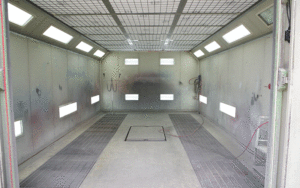 外板修理で塗装を行う場所で、適切な温度、湿度が保たれるように調整し乾燥する塗装ブースです。また、有害な物質を外部に出さないためにも必須な設備です。
